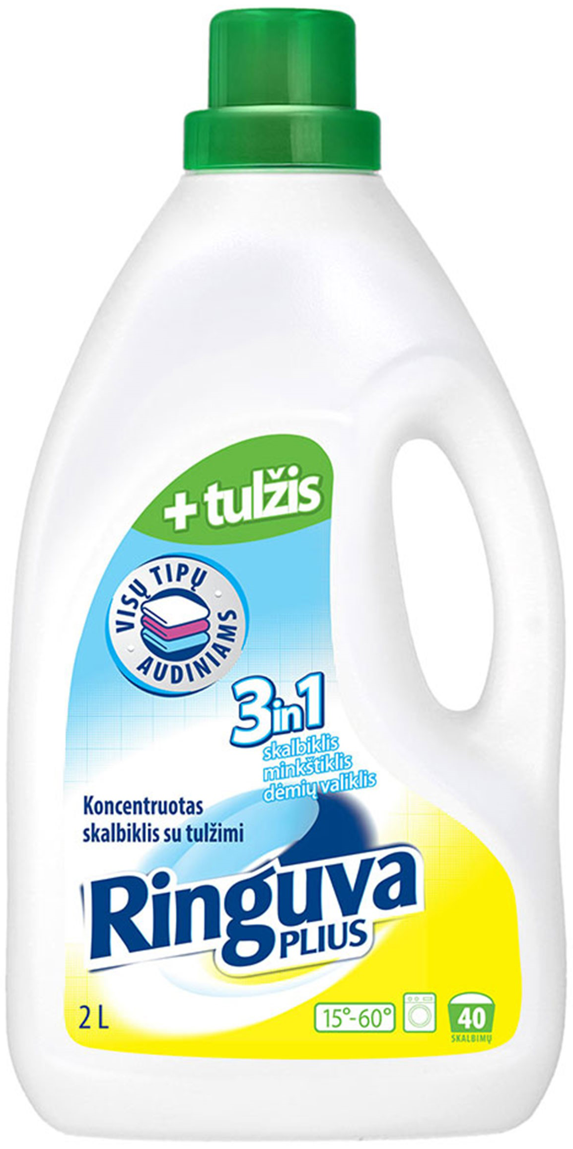 RINGUVA PLIUS 3 in 1 mazgāšanas līdzeklis, traipu tīrītājs un audumu mīkstinātājs (2 l iepakojums). Efektīvi mazgā, mīkstina un tīra traipus. Drošs mazgāšanai ar rokām, neizraisa alerģiju. Ekonomisks iepakojums ikdienas lietošanai. Tilpums: 2 l.