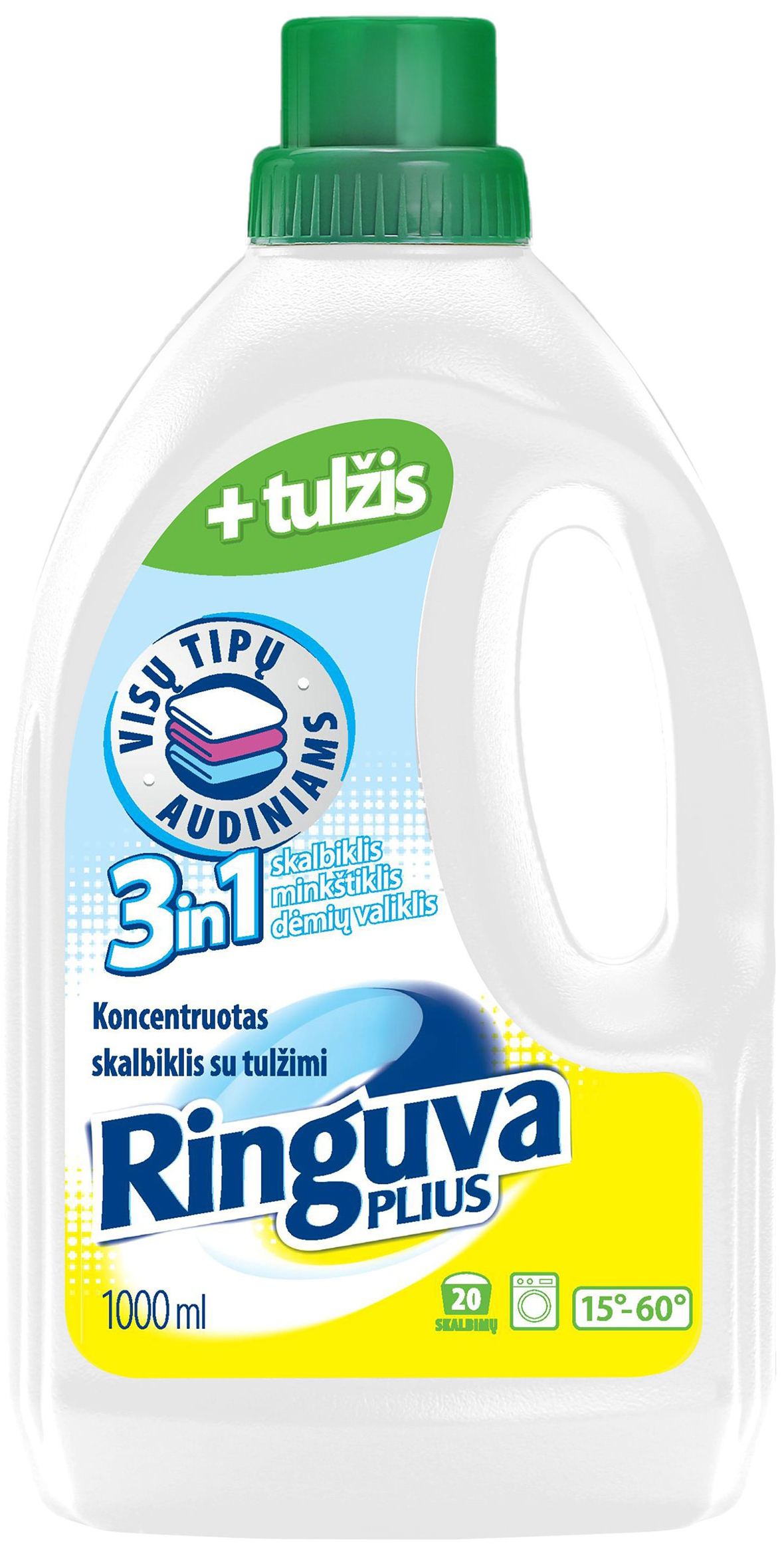 RINGUVA PLIUS 3 in 1 mazgāšanas līdzeklis, traipu tīrītājs un audumu mīkstinātājs. Efektīvi mazgā, mīkstina audumu un tīra grūti pieveicamus olbaltumvielu un tauku izcelsmes traipus. Nesatur alergēnas smaržvielas, hloru vai krāsvielas. Saudzīgs roku ādai. 1 litra iepakojums paredzēts 20 mazgāšanas reizēm. Tilpums: 1 l.