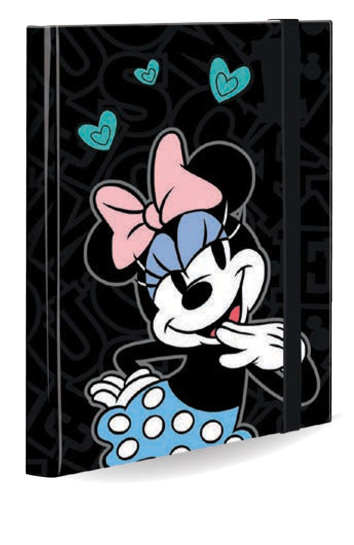 Mape ar gumiju COOLPACK Minnie Mouse, kartona, A4. Mape ar cietiem vākiem, izturīga elastīga lenta. Mape paredzēta burtnīcu, dokumentu, diplomu un mākslas darbu glabāšanai. Attēls tiek izvēlēts nejauši, izvēles iespējas nav.