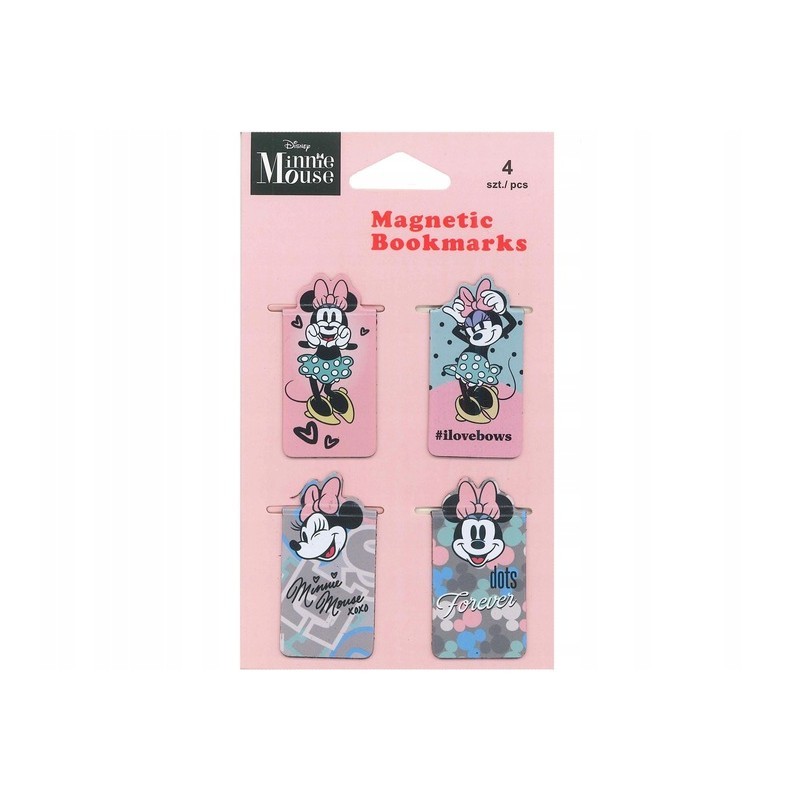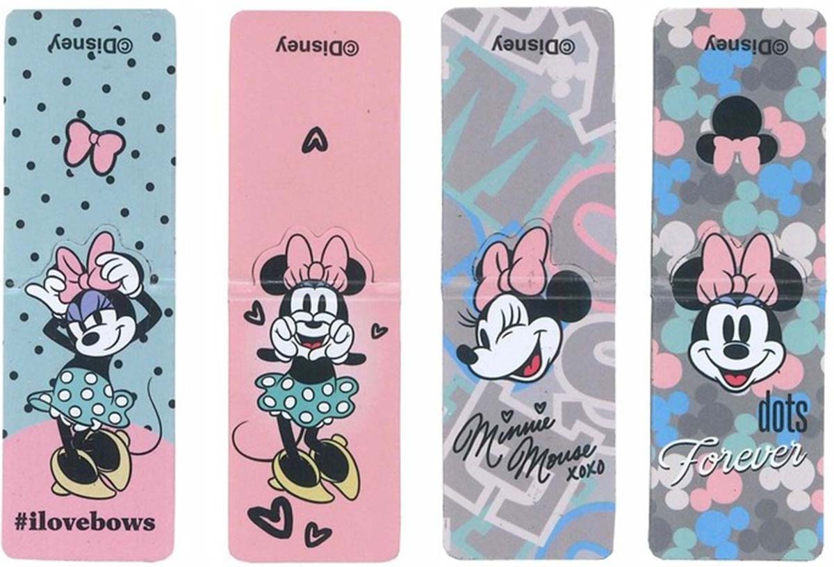 Magnētiskās grāmatzīmes COOLPACK Minnie Mouse, 4 gab. Grāmatzīmes palīdzēs nepazaudēt pēdējo lasīto lapaspusi. Ideāli piemērotas piezīmēm un dokumentiem. Salocītas grāmatzīmes izmērs: 5x2,5 cm.