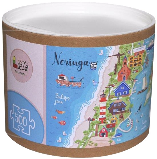 Lietuvas pilsētas reprezentējoša puzle Neringa no 500 detaļām, 32x45 cm. Pilnīgi 100% ekoloģiska. Mūsu ikdiena sastāv no maziem notikumiem, gadījumiem, bet dzīve - no šīm dienām. Tā mēs arī liekam savu ceļu, savas dzīves zīmējumu. Arī pilsētas izveidojās pamazām. Katrai ir savas brīnišķīgas un izteiksmīgas detaļas, un katra no tām ir svarīga. Tas ir lielisks suvenīrs, pilsētas reprezentatīva dāvana un izglītojošs līdzeklis.