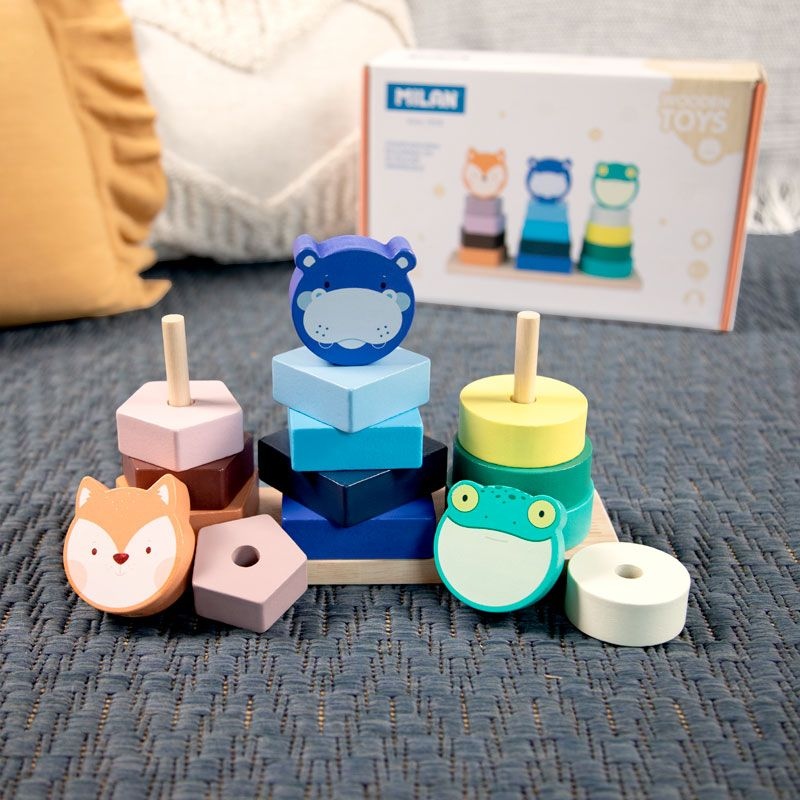 Koka attīstošā rotaļlieta MILAN Dzīvnieku tornis