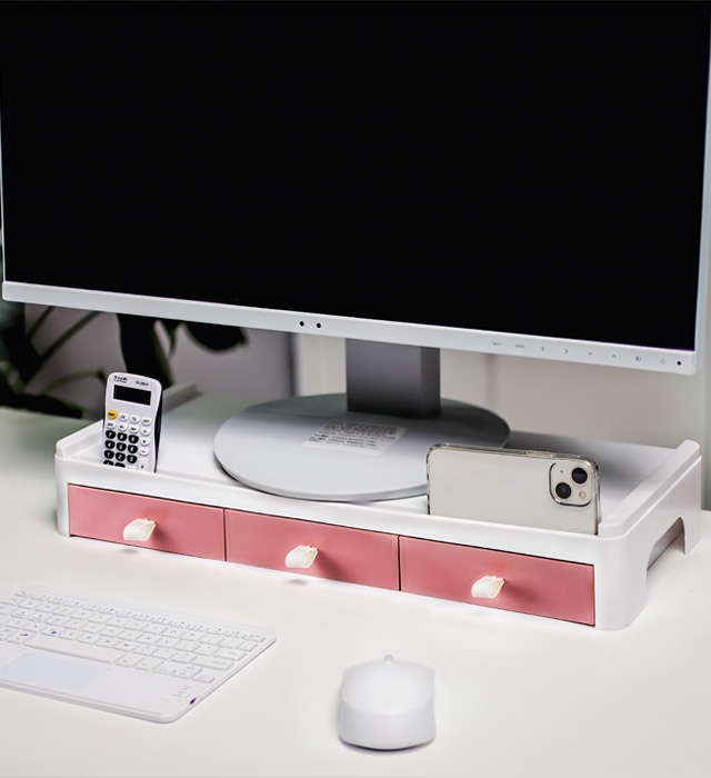 Monitora statīvs YELLOW ONE, ar atvilktnēm, rozā