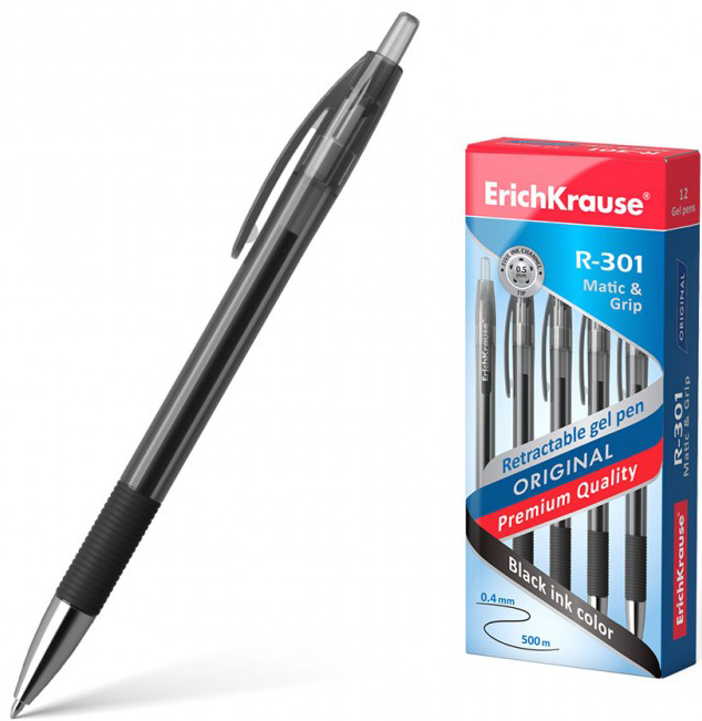 Automātiska gēla pildspalva ERICH KRAUSE R-301, 0.4 mm, melna