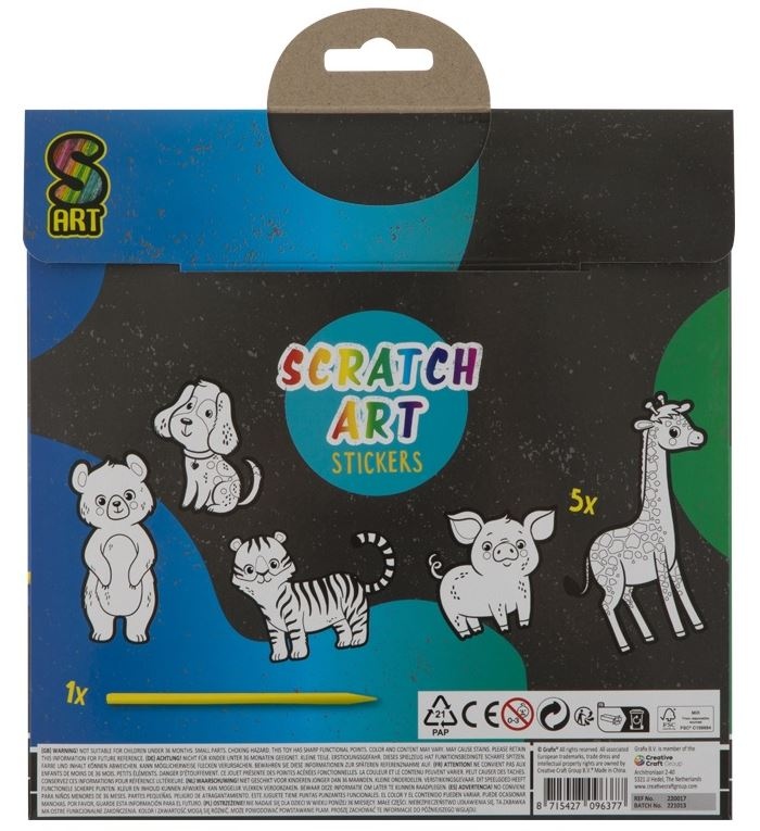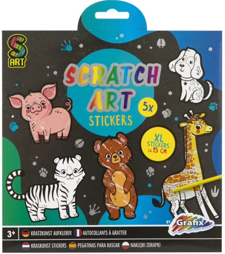 Skrāpējamo uzlīmju komplekts GRAFIX Dzīvnieki, 5 gab.