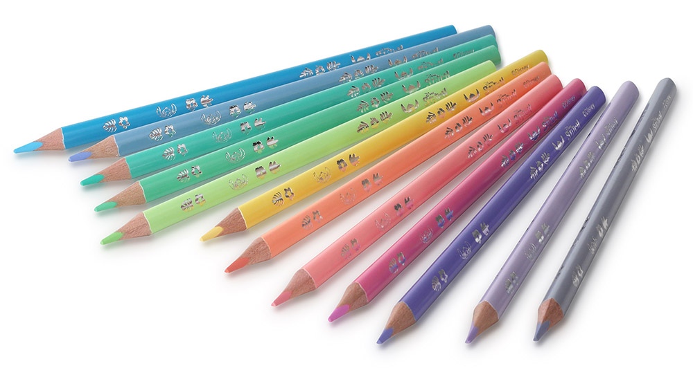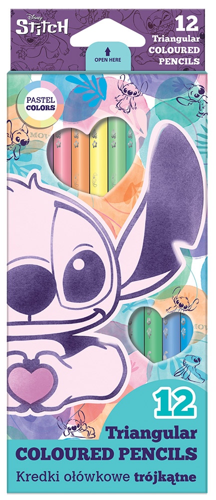 Krāsainie zīmuļi DISNEY Stitch Pastel, trīsstūrveida, 12 krāsas