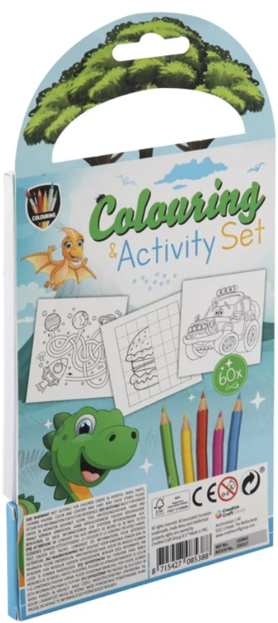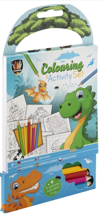 GRAFIX krāsojamā un aktivitāšu grāmata Dinozaurs, ar 5 zīmuļiem