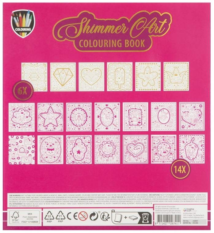 Krāsojamā grāmata ar foliju GRAFIX Shimmer Art Sarkanā krāsa, 20 lapas