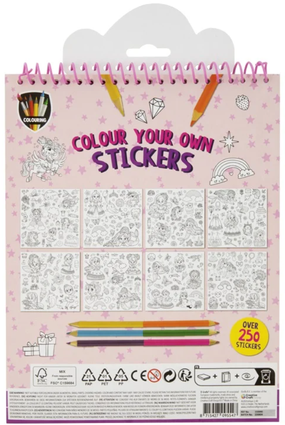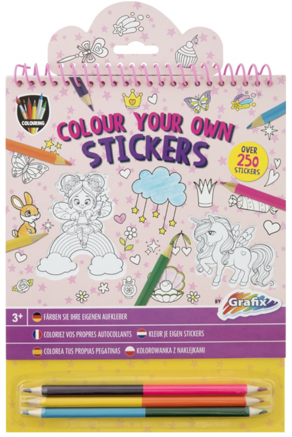 Uzlīmju krāsojamā grāmata ar zīmuļiem GRAFIX Vienradzis, 250 uzlīmes