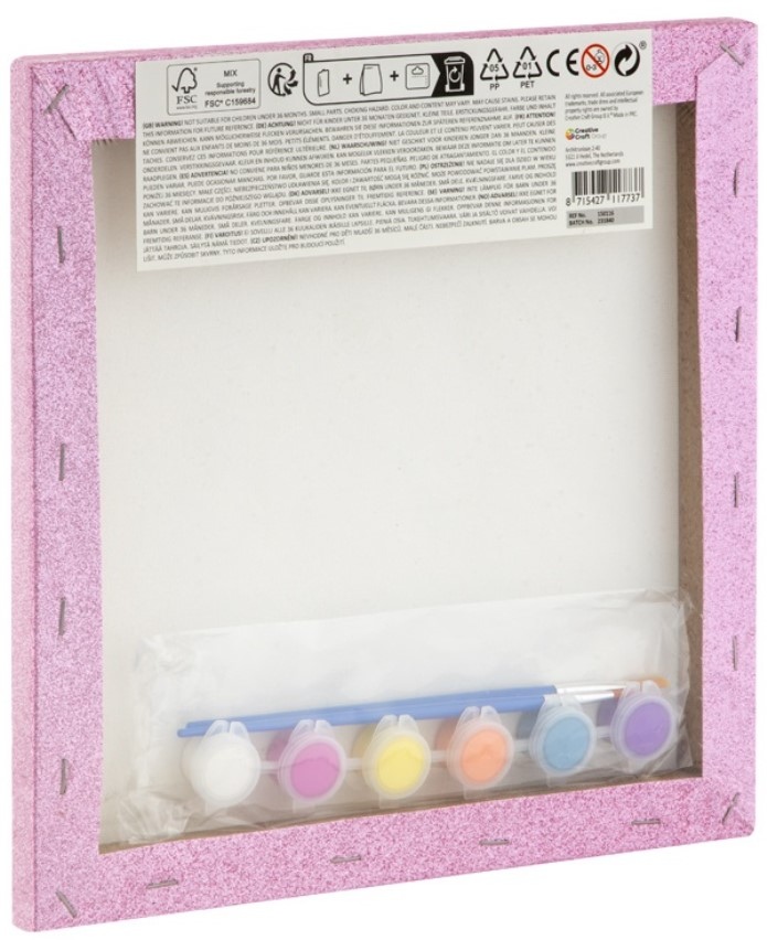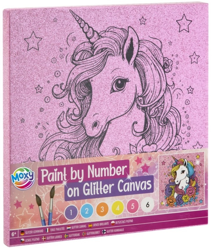 Gleznošanas pēc skaitļiem komplekts GRAFIX Vienradzis, mirdzošs audekls, 25x25 cm