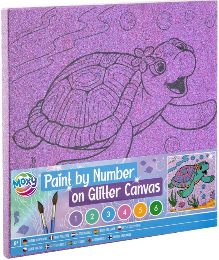 Gleznošanas pēc skaitļiem komplekts GRAFIX Bruņurupucis, mirdzošs audekls, 25x25 cm