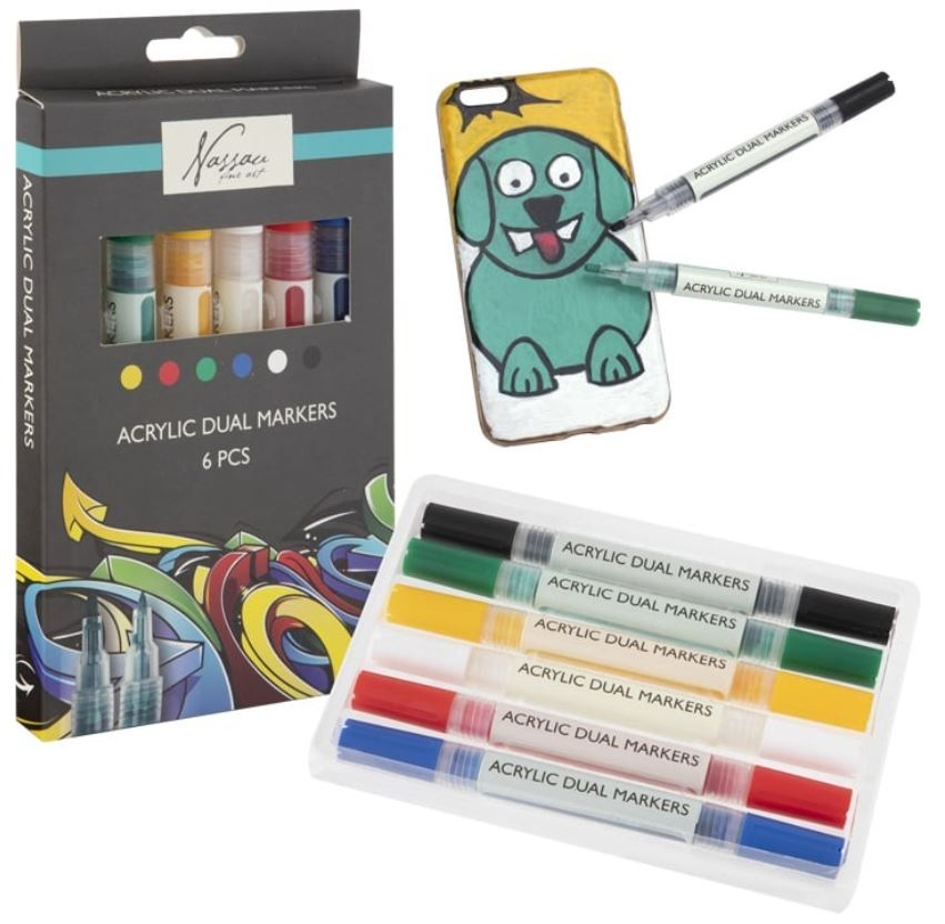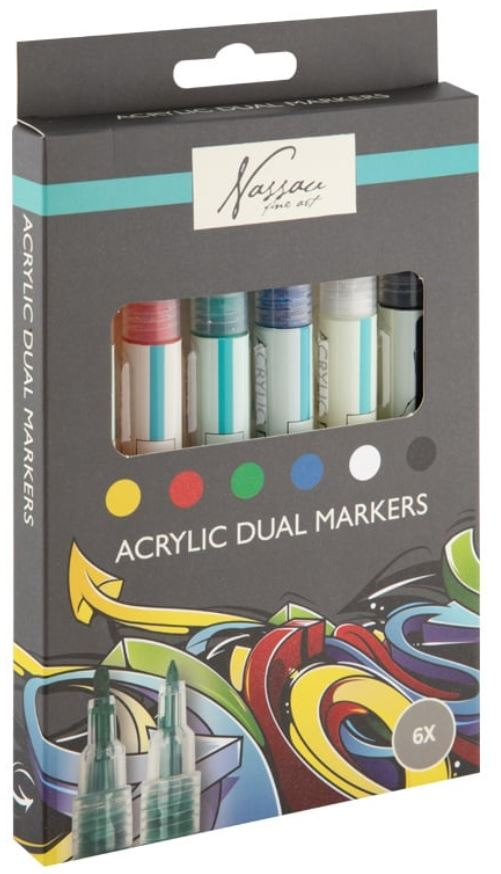 Akrila marķieri NASSAU, divpusēji, 6 krāsas