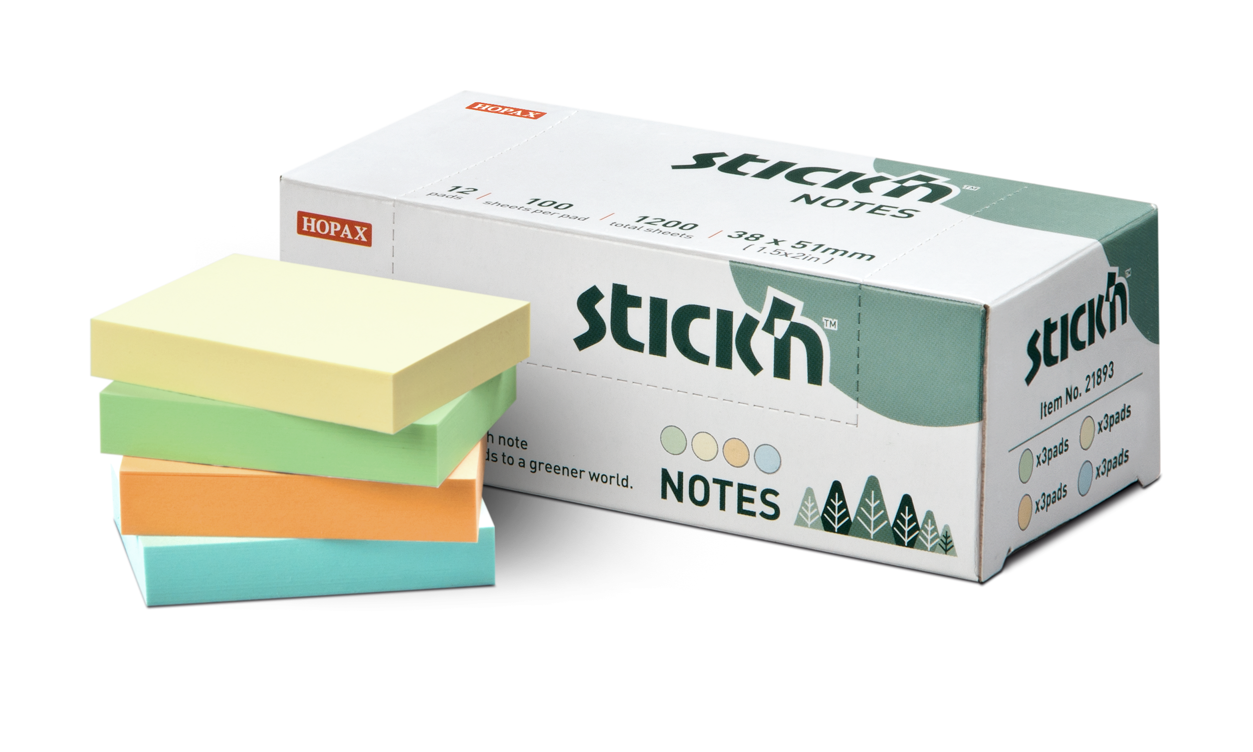 Līmlapiņas STICK´N, FSC, 38 × 51 mm, 1200 lapas, dažādās pasteļkrāsās