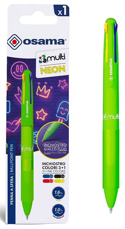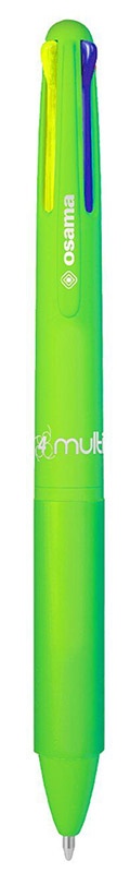 Automātiska 4 krāsu lodīšu pildspalva OSAMA 4Multi Neon, 1 mm, zaļš korpuss