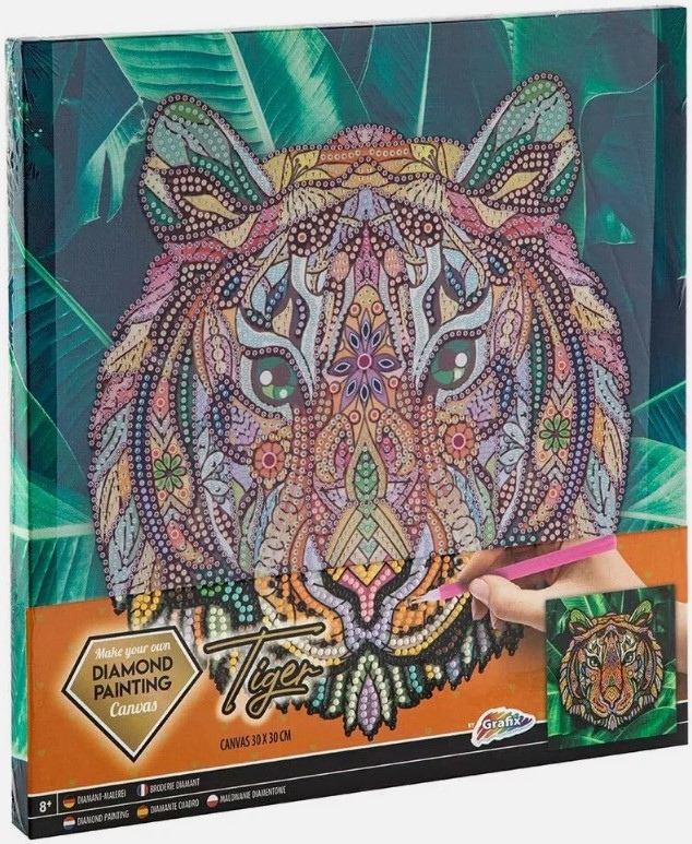 Dimantu mozaīka uz audekla GRAFIX Tīģeris, 30x30 cm