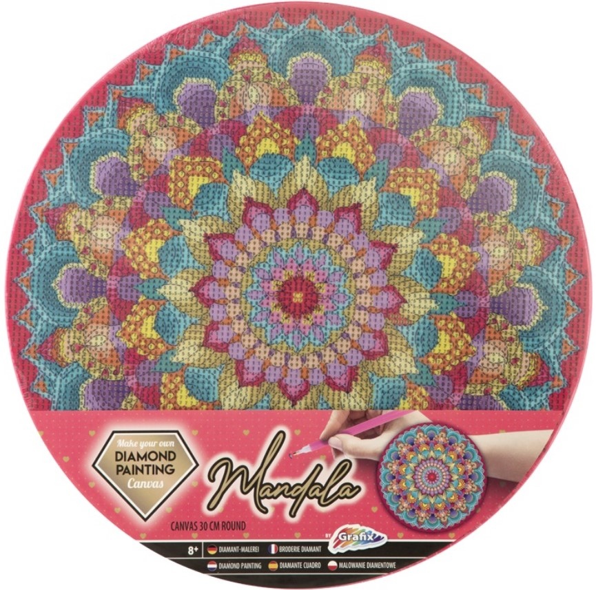 Dimantu mozaīka uz audekla GRAFIX Mandala, rozā, 30 cm