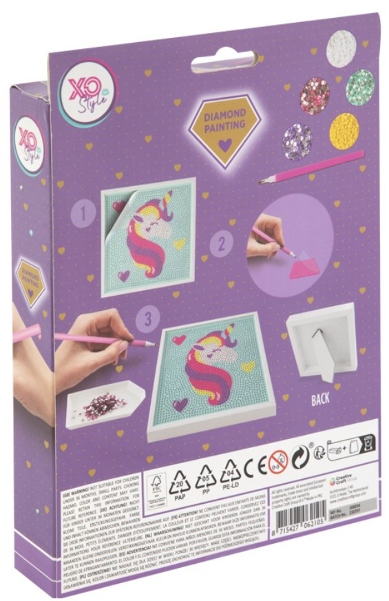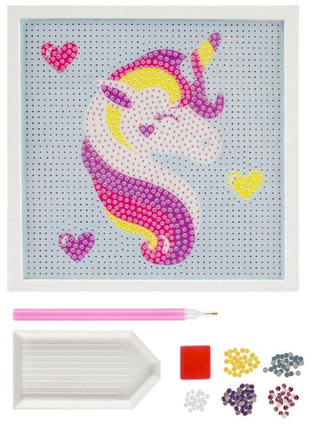 Dimanta mozaīka uz audekla GRAFIX Vienradzis, 15x15 cm