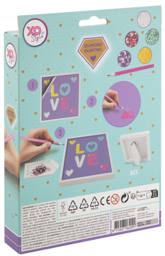 Dimanta mozaīka uz audekla GRAFIX Love, 15x15 cm