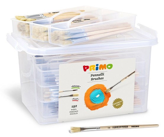 Dabīgo saru otu komplekts kastē PRIMO, plakanas un apaļas, 12 izmēri, 192 gab.