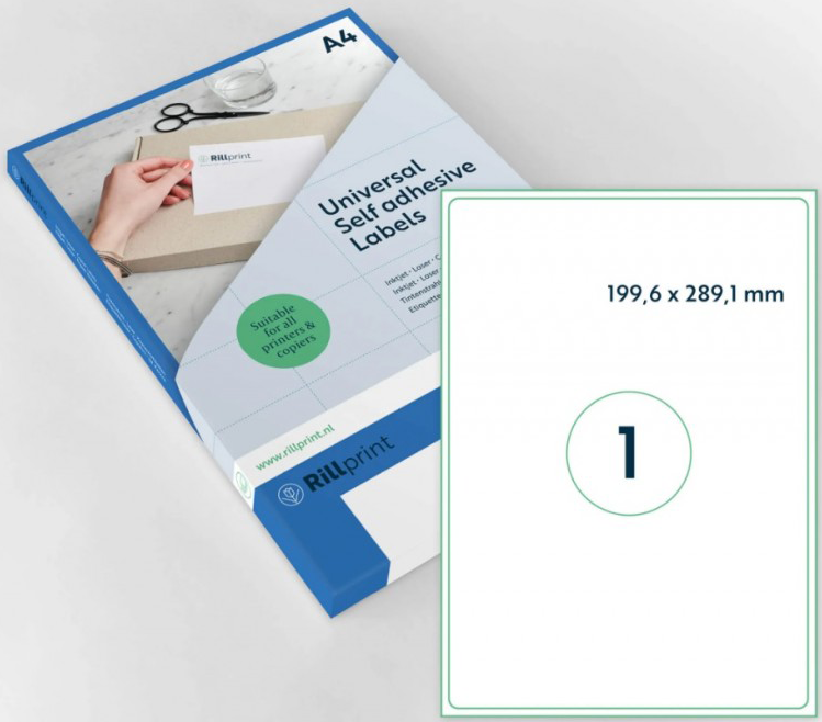 Etiķešu uzlīmes RILLPRINT 199.6x289.1 mm, A4, 1 uzlīme lapā, 100 lapas