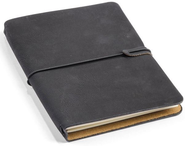 Piezīmju grāmatiņa RETRO, A5, līnijotā, eko āda, melna
