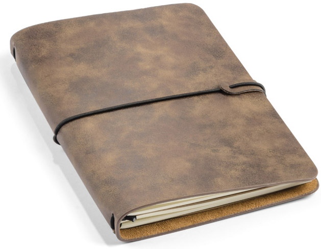 Piezīmju grāmatiņa RETRO, A5, līnijotā, eko āda, brūna