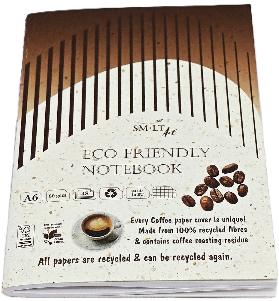 Piezīmju grāmatiņa, piešūta SM-LT ECO Art, A6, 48 lapas, ar kvadrātiņiem