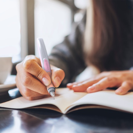 Tintes pildspalva SCHNEIDER Ray, kreiļiem, pelēkrozā korpuss