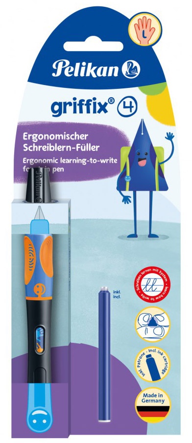 Tintes pildspalva PELIKAN Griffix-4, kreiļiem, Neon Black, blisterī