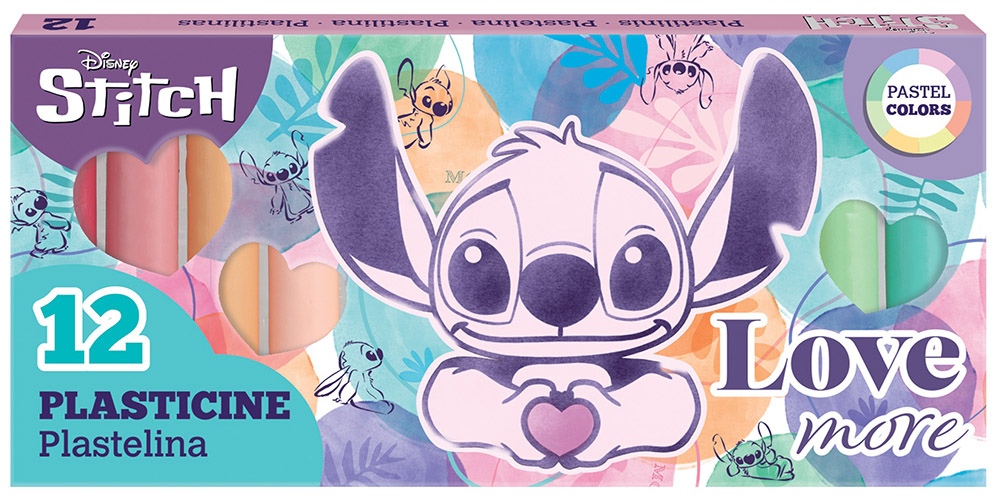 Plastilīns DISNEY Stitch Pastel, apaļš, 12 krāsas