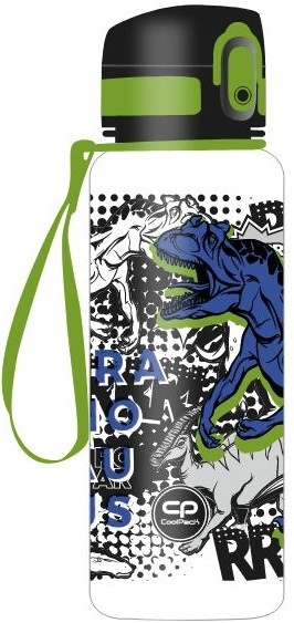 Dzeramā pudele COOLPACK Brisk T-Rex, 400 ml. Pudelei ir ērts aizslēgs, atverama ar pogu. Droši materiāli saskarei ar pārtiku. Tilpums: 400 ml. Izmēri: 8x8x19 cm.