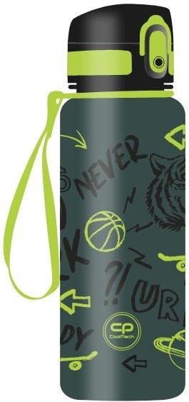 Dzeramā pudele COOLPACK Brisk Tiger, 400 ml. Pudelei ir ērts aizslēgs, atverama ar pogu. Droši materiāli saskarei ar pārtiku. Tilpums: 400 ml. Izmēri: 8x8x19 cm.