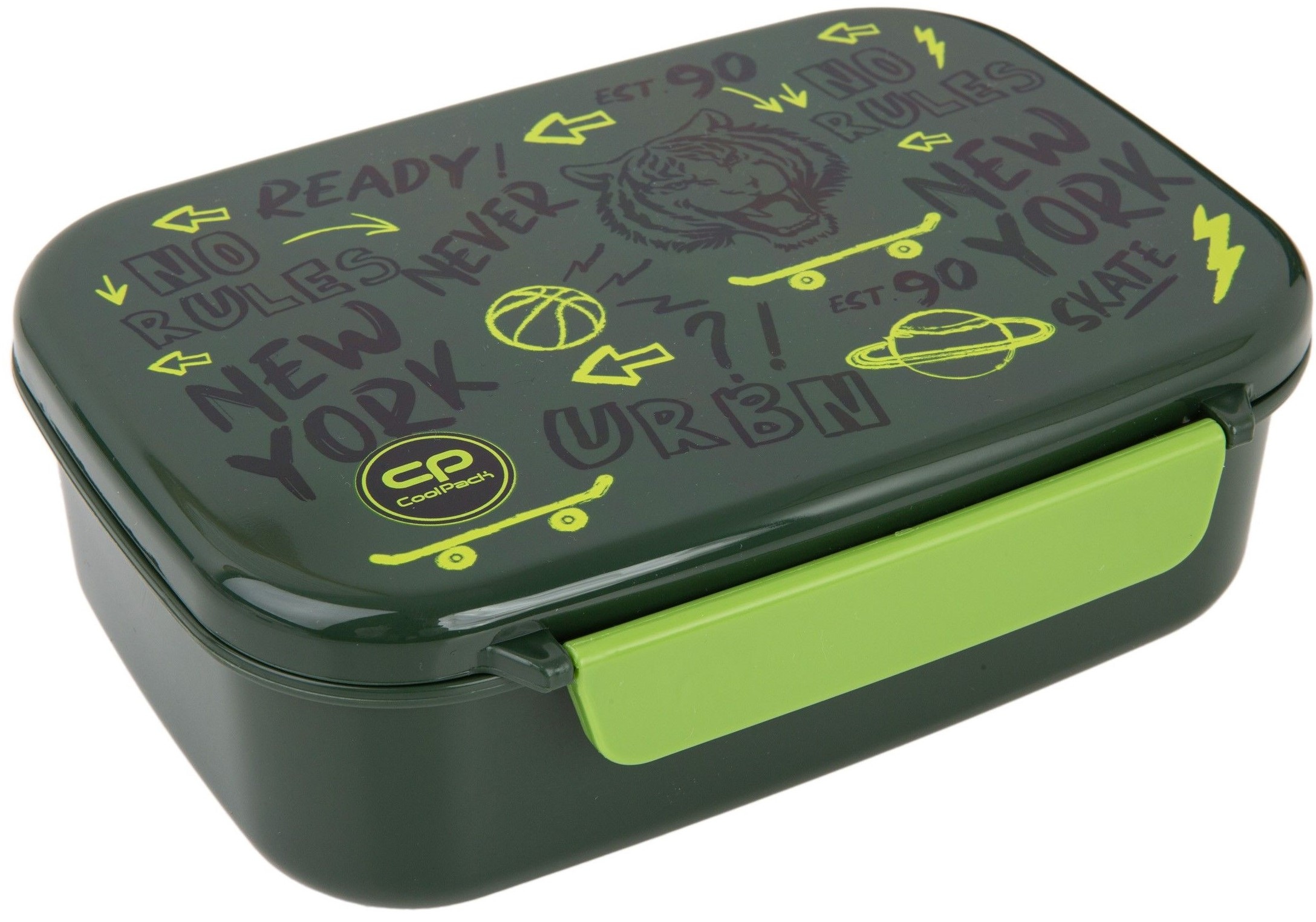 Pusdienu kārba COOLPACK Foodyx Tiger, ar nodalījumu. Ietilpīga, hermētiska un droša. Nesatur BPA. Ideāli piemērota skolai un ceļojumiem. Tilpums: 765 ml. Nav piemērota trauku mazgājamām mašīnām vai mikroviļņu krāsnīm. Izmēri: 18x14x6 cm.