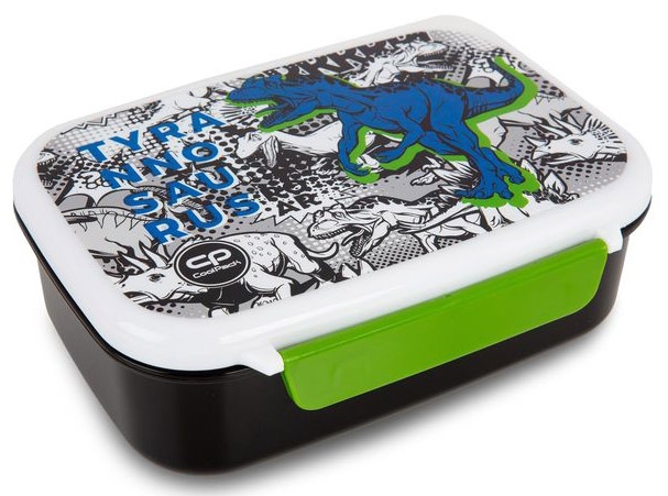 Pusdienu kārba COOLPACK Foodyx T-REX, ar nodalījumu. Ietilpīga un droša. Nesatur BPA. Izturīgs materiāls saskarei ar pārtiku. Tilpums: 765 ml. Nav piemērota trauku mazgājamām mašīnām vai mikroviļņu krāsnīm. Izmēri: 18x14x6 cm.