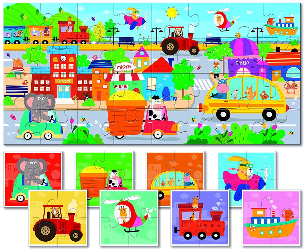 Divpusēja puzle mazuļiem LUDATTICA Transports, 32 detaļas