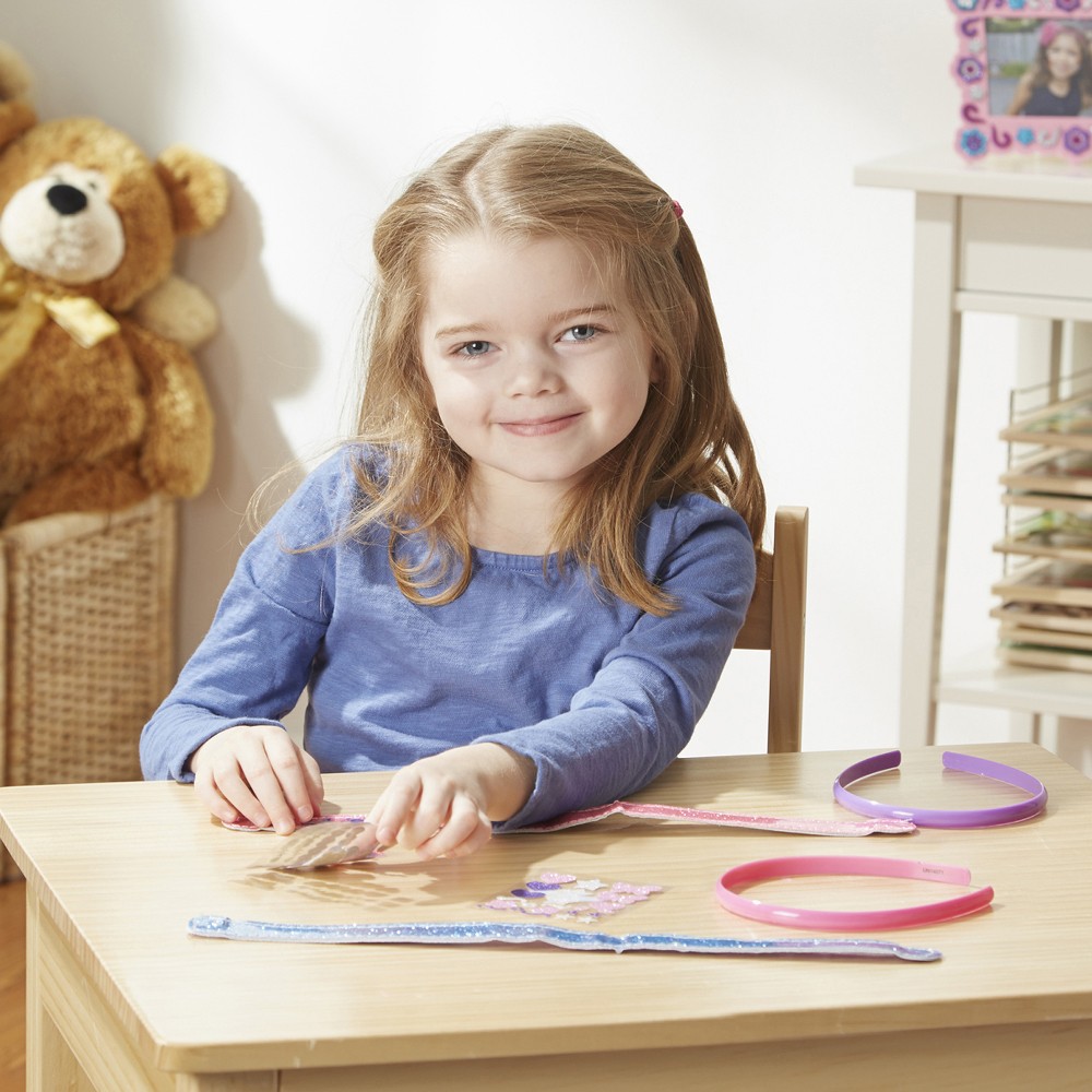 Ja mekle jaunas stila idejas vai tikai apsver, ka labak sanemt kritošos matus, izveido savu matu stipinu ar komplektu MELISSA & DOUG Design Your Own. Taja atradisi visus piederumus, lai izgatavotu divas lieliskas matu stipinas. Izmanto komplekta esošos stipinu pamatus, uzlimes, spidošo limi un izveido savu unikalo banti. Lauj savai iztelei lidot, un tev bus lieliska rota, kuru nesat ar lepnumu. Komplekts palidz attistit bernu motorikas prasmes un radošumu. Berniem no 4 gadiem. Bridinajums! Nav piemerots berniem lidz 3 gadu vecumam. Sikas detalas, pastav aizrišanas risks. Lietot pieaugušo uzraudziba. Komplekts sastav no 2 stipinam, 2 abpusejiem stipinu ieliktniem, apmeram 50 spidigam uzlimem, spidošas limes.