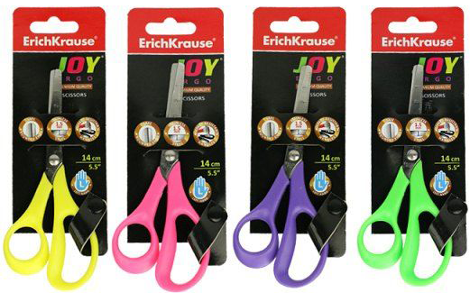Šķēres bērniem ERICH KRAUSE Joy Ergo, dažādas krāsas, kreiļiem, blisterī, 14 cm