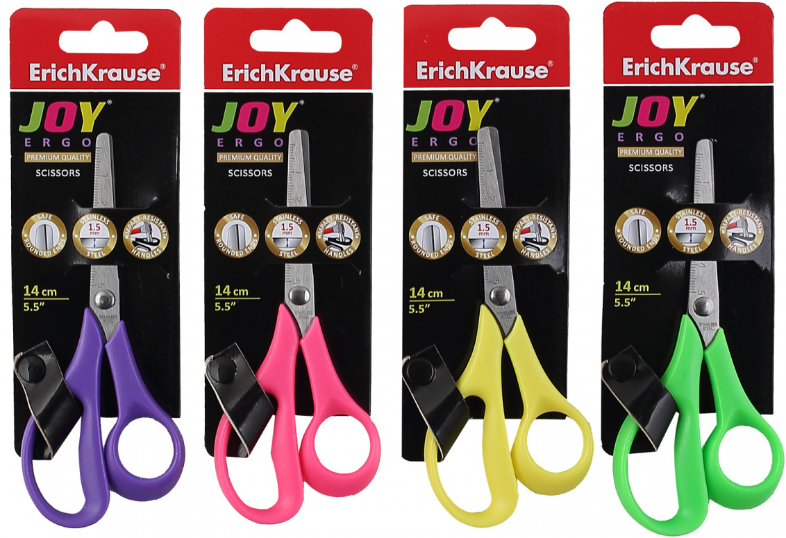 Šķēres bērniem ERICH KRAUSE Joy Ergo, dažādas krāsas, blisterī, 14 cm