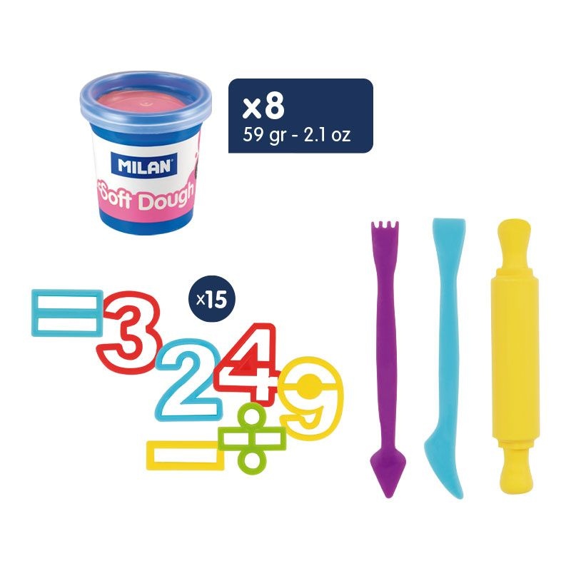 Modelēšanas komplekts ar piederumiem MILAN Daudz skaitļu, 8 krāsas