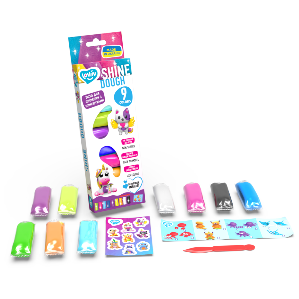 Spīdošs plastilīns OKTO Lovin Modeling, 9 krāsas