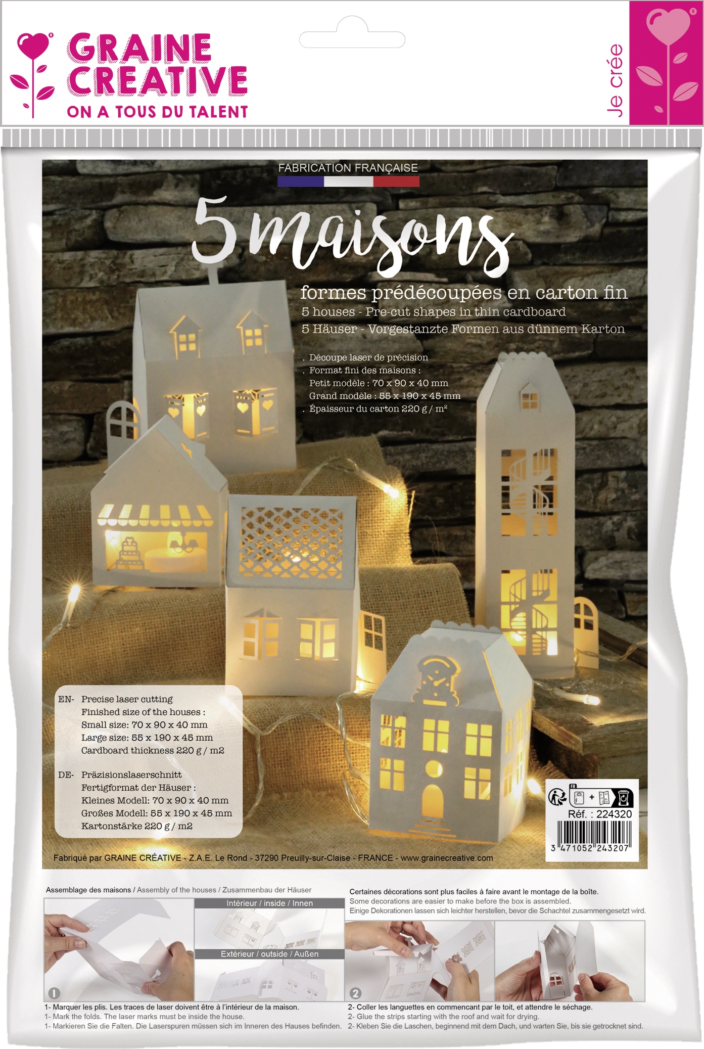 Balto mājiņu locīšanas komplekts GRAINE CREATIVE
