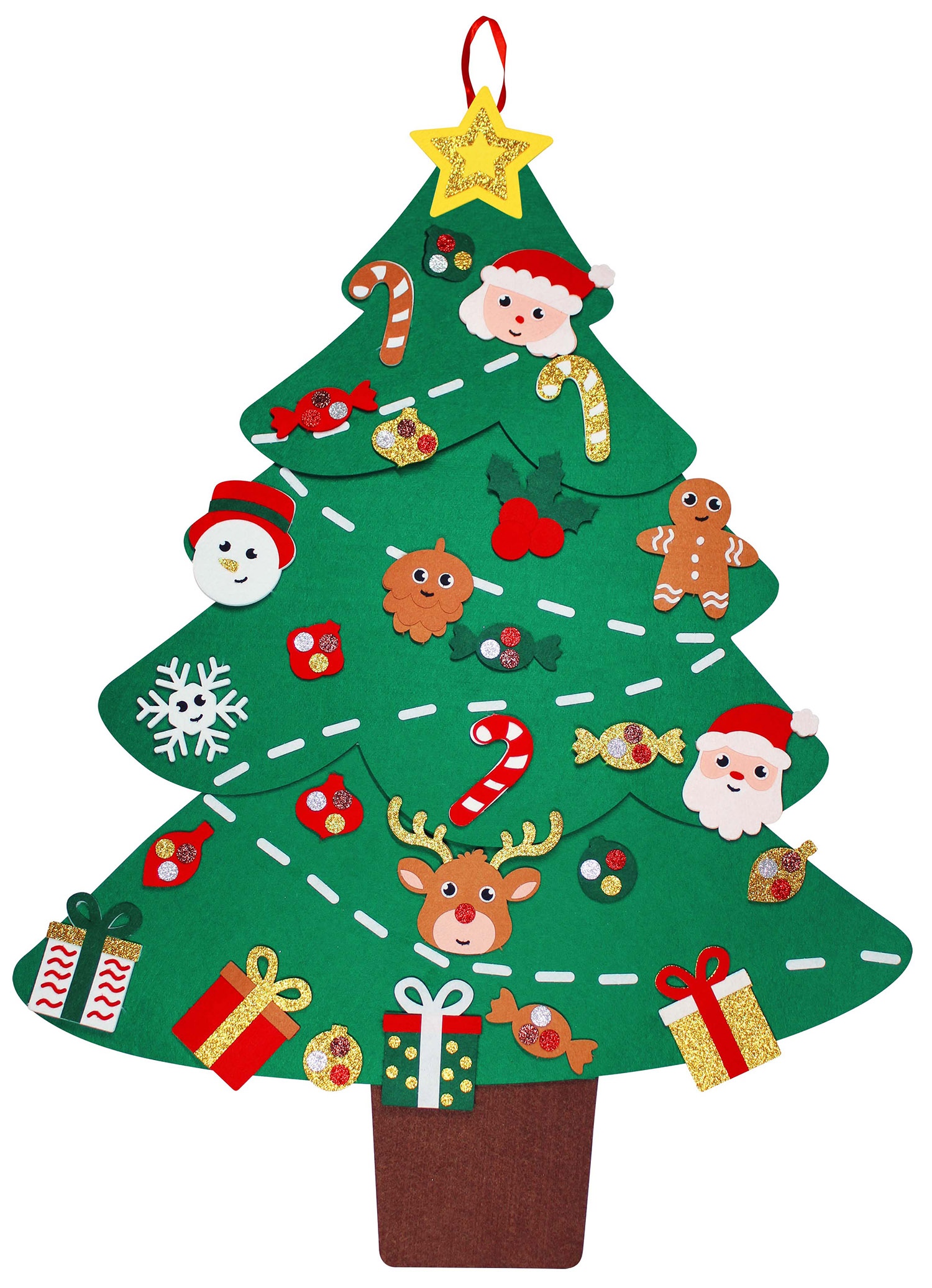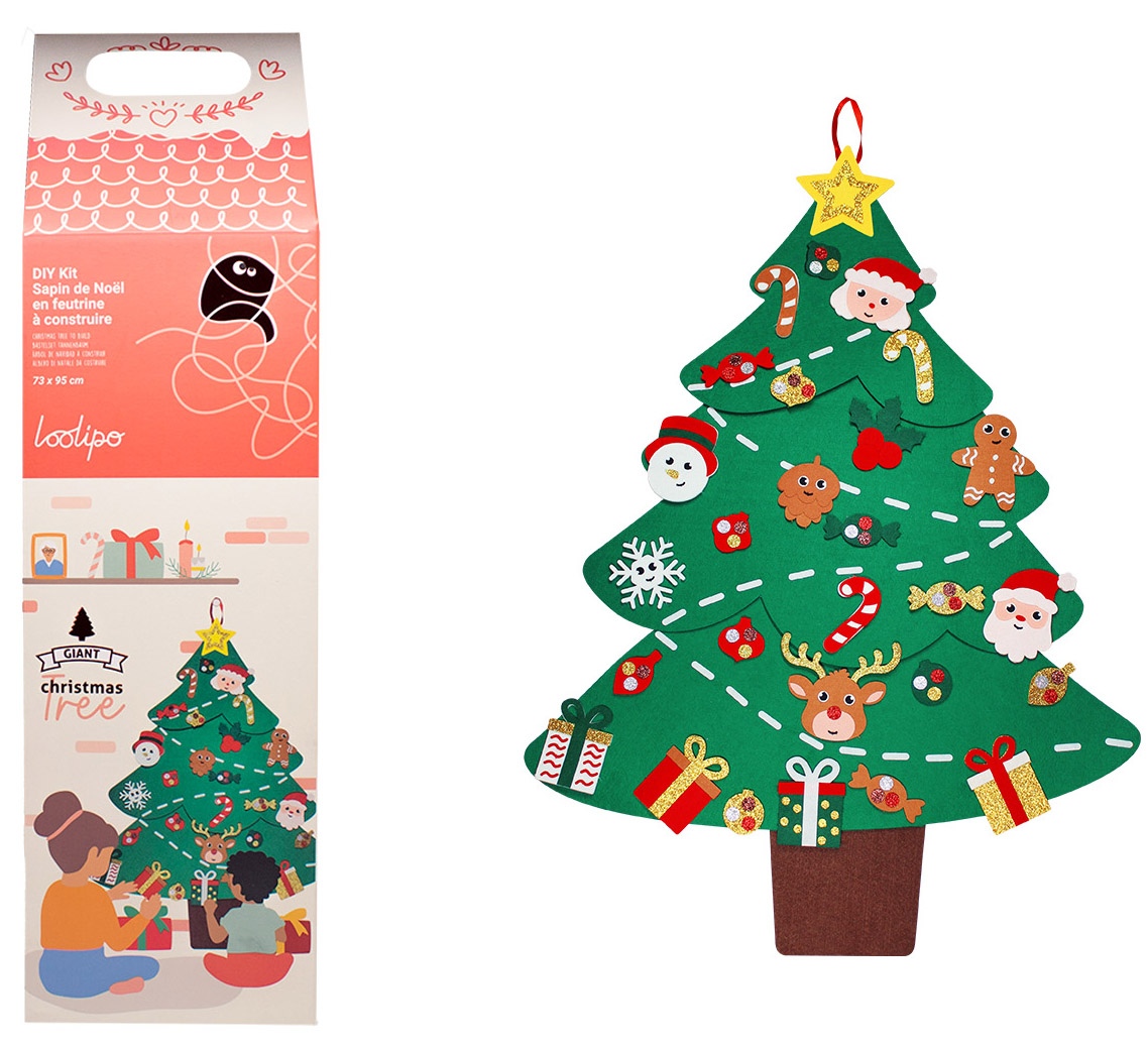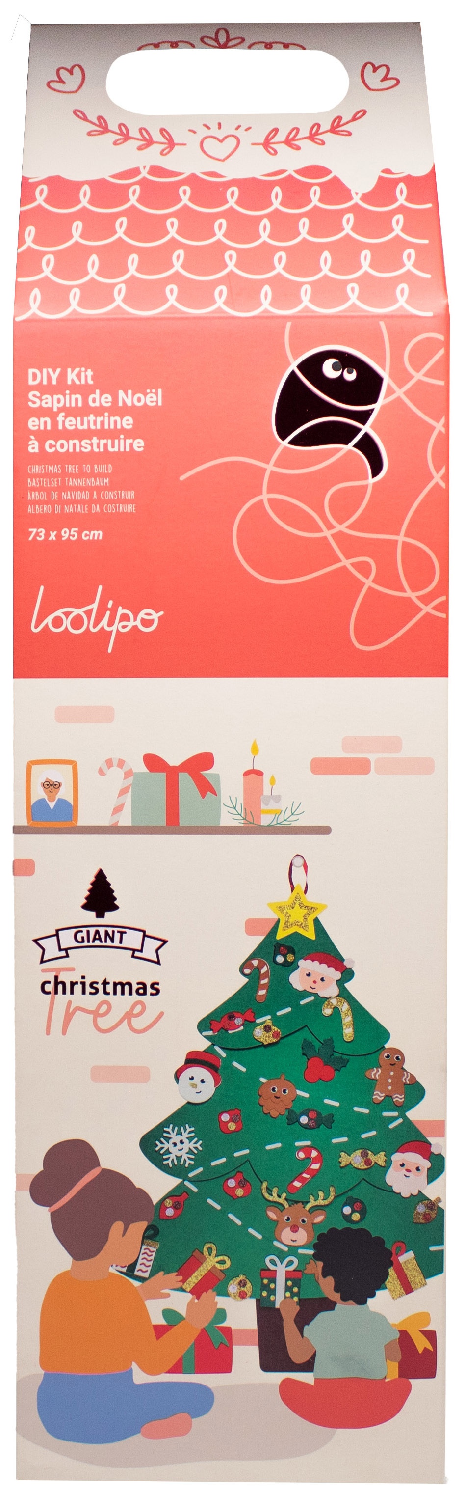 Milzīga saliekama filca eglīte ar līmējamiem rotājumiem LOOLIPO