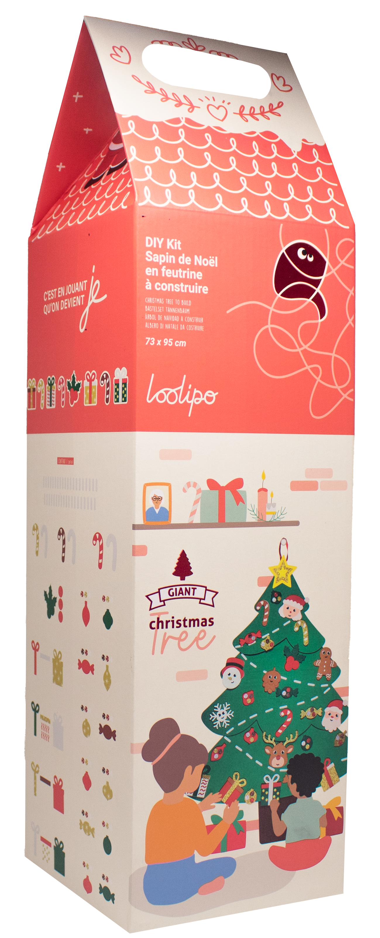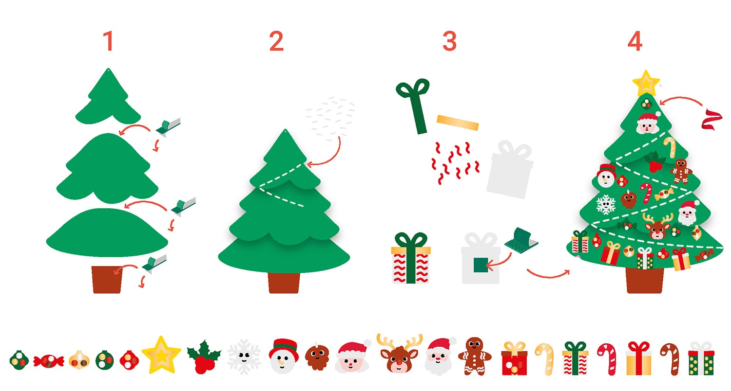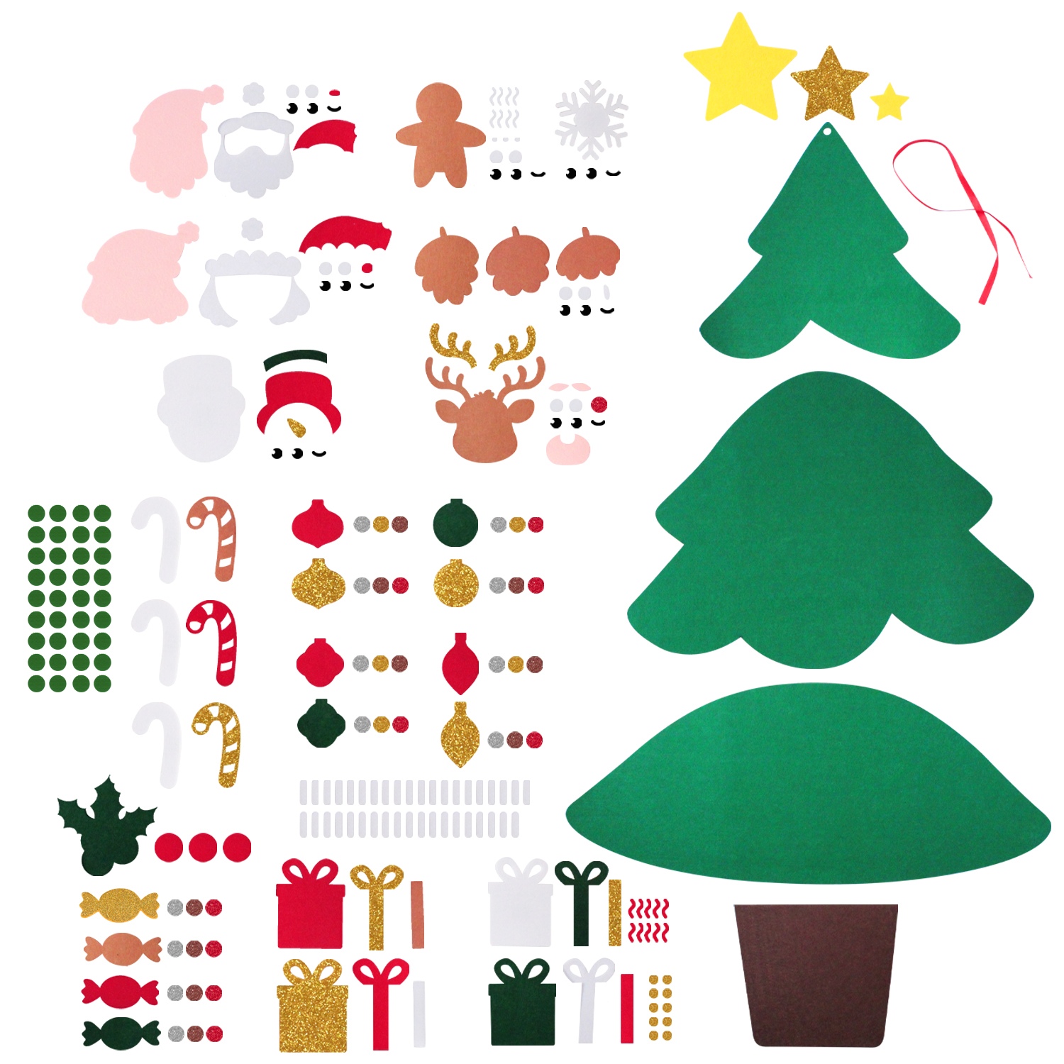 Milzīga saliekama filca eglīte ar līmējamiem rotājumiem LOOLIPO