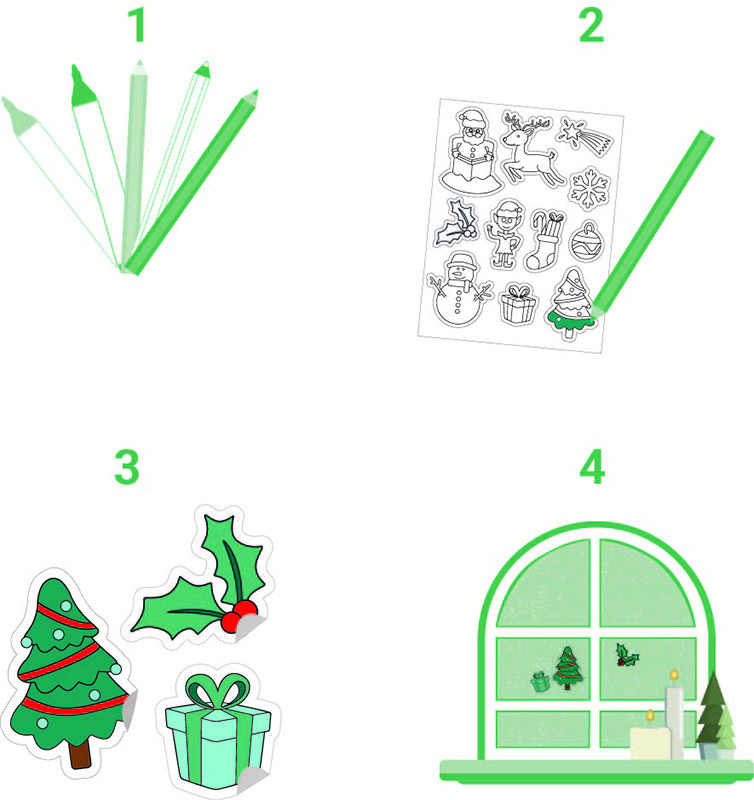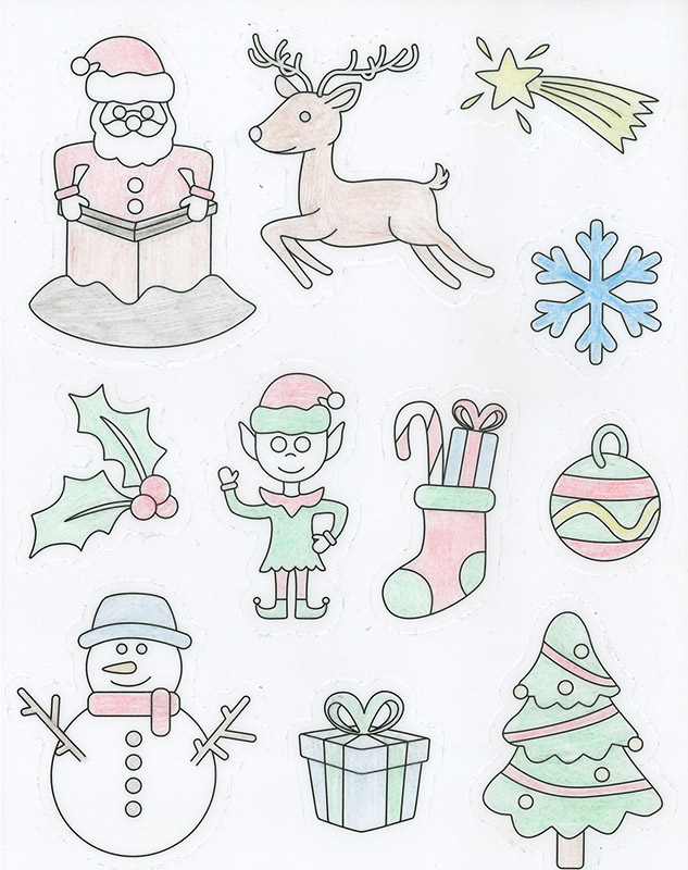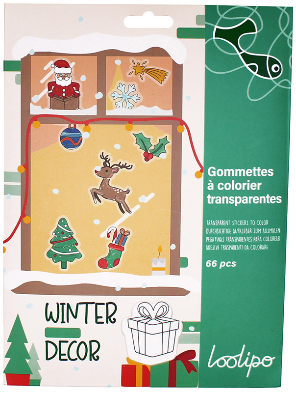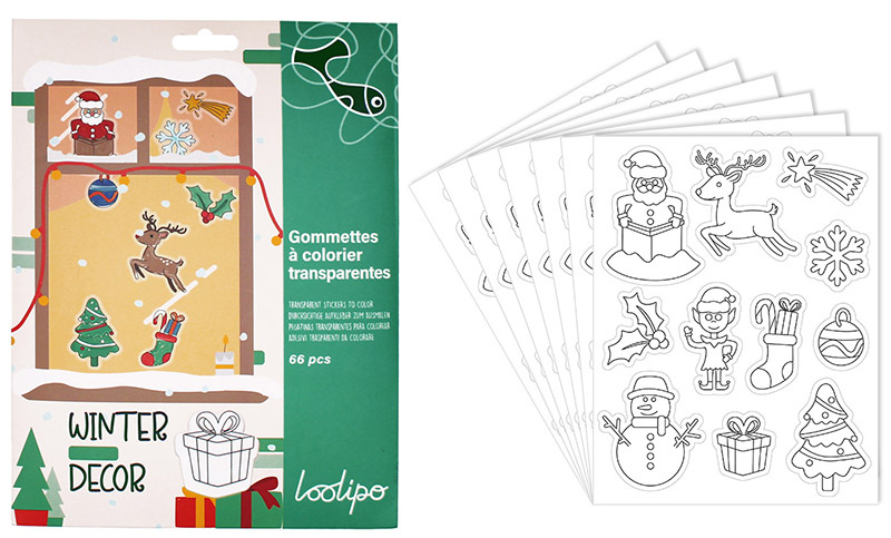 Caurspīdīgas krāsojamas uzlīmes LOOLIPO Ziemassvētki, 66 gab.
