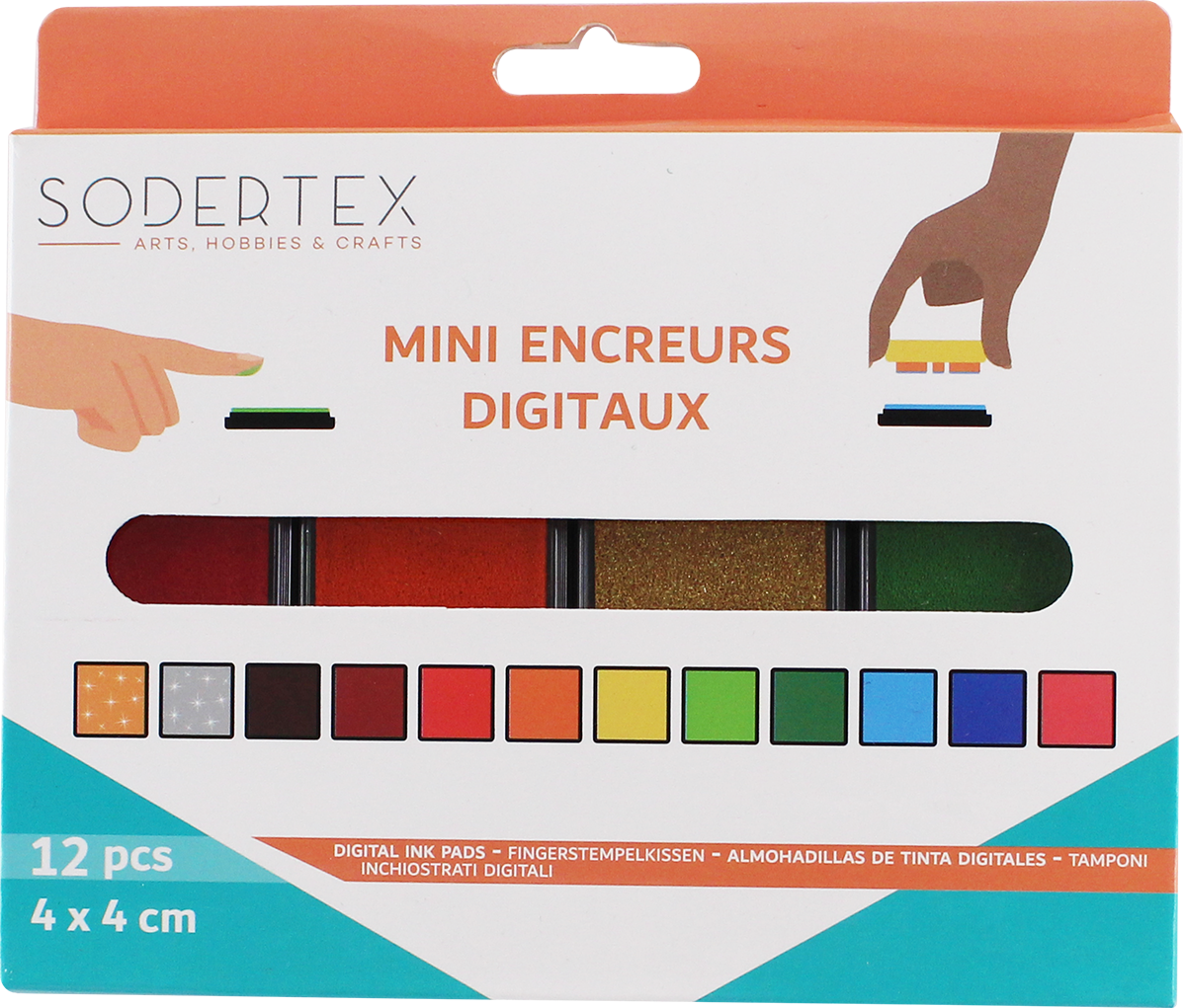 Dažādu krāsu tinte zīmogiem SODERTEX, 12 krāsas
