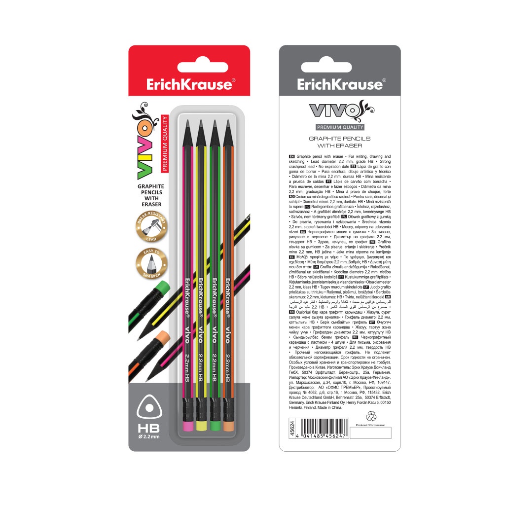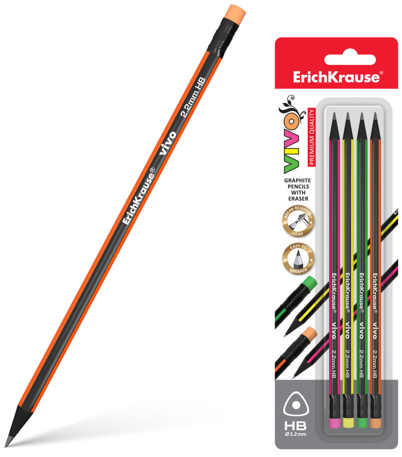 Zīmulis ERICH KRAUSE VIVO®, trīsstūrains, ar dzēšgumiju, blisterī, 4 gab., HB