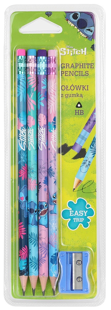 Zīmuļi ar dzēšgumijām DISNEY Stitch Blue, trīsstūrveida, ar asināmo, HB, 4 gab.
